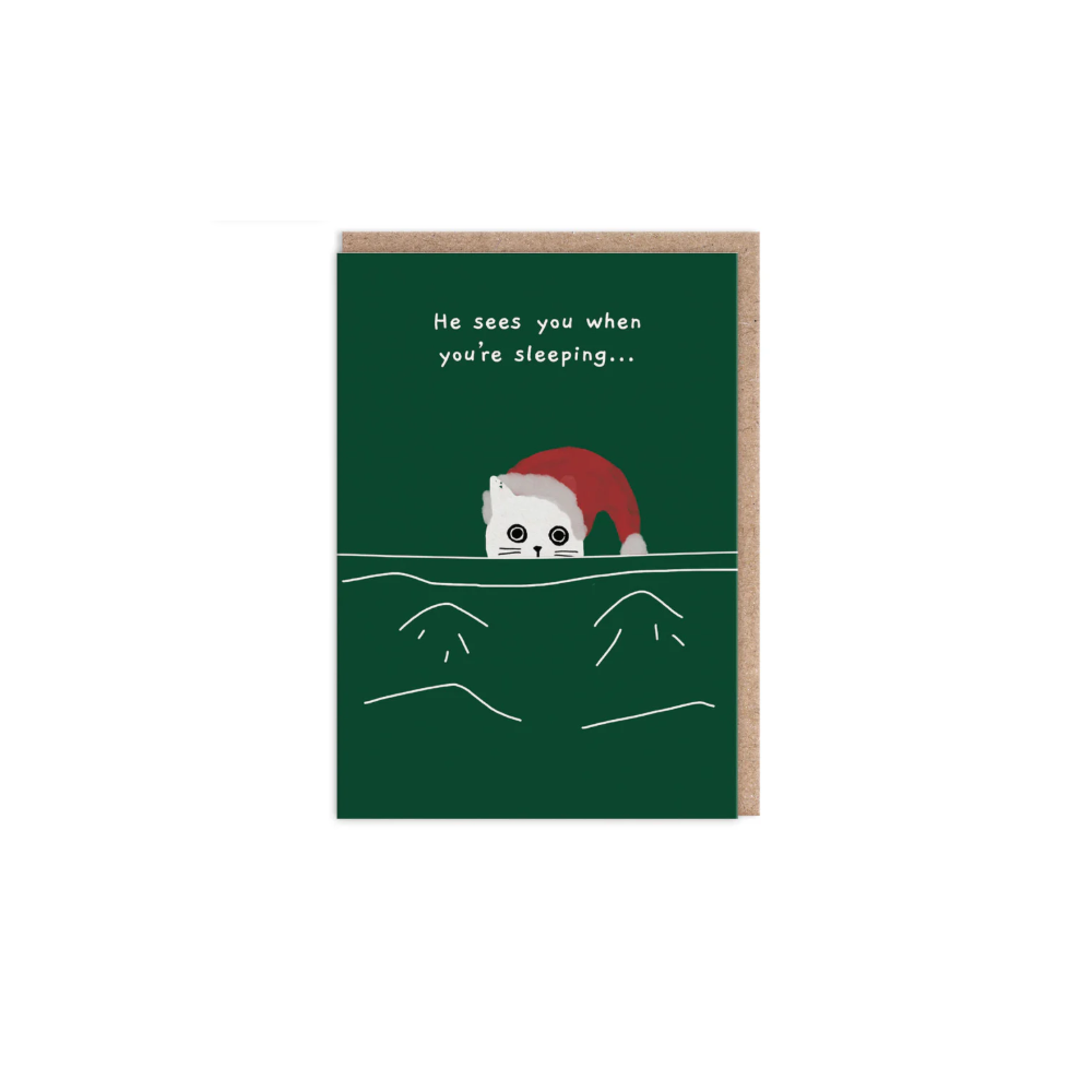 He Sees You When You're Sleeping Cat Christmas Card