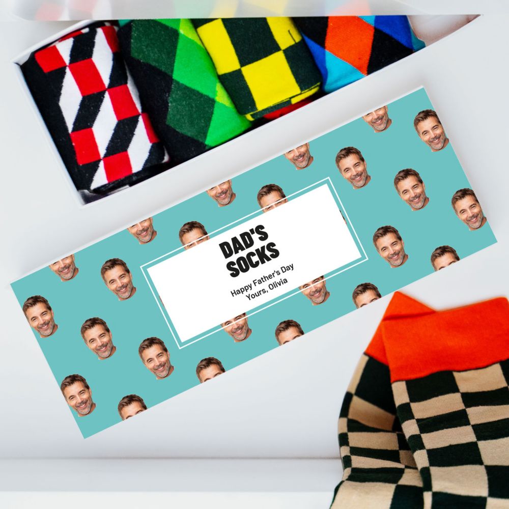 Treat your feet to some personalised flair with our Personalised Box of Socks! This quirky box comes with 5 colourful pairs of socks, each ready to colour your day. They're packed in style in a box that can be personalised with your text and face of choice. Whether it’s your mug, your mate’s, or the family pet, this is your chance to really sock it to ‘em.