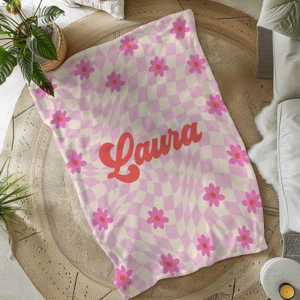 - Personalised blanket with retro background and name.