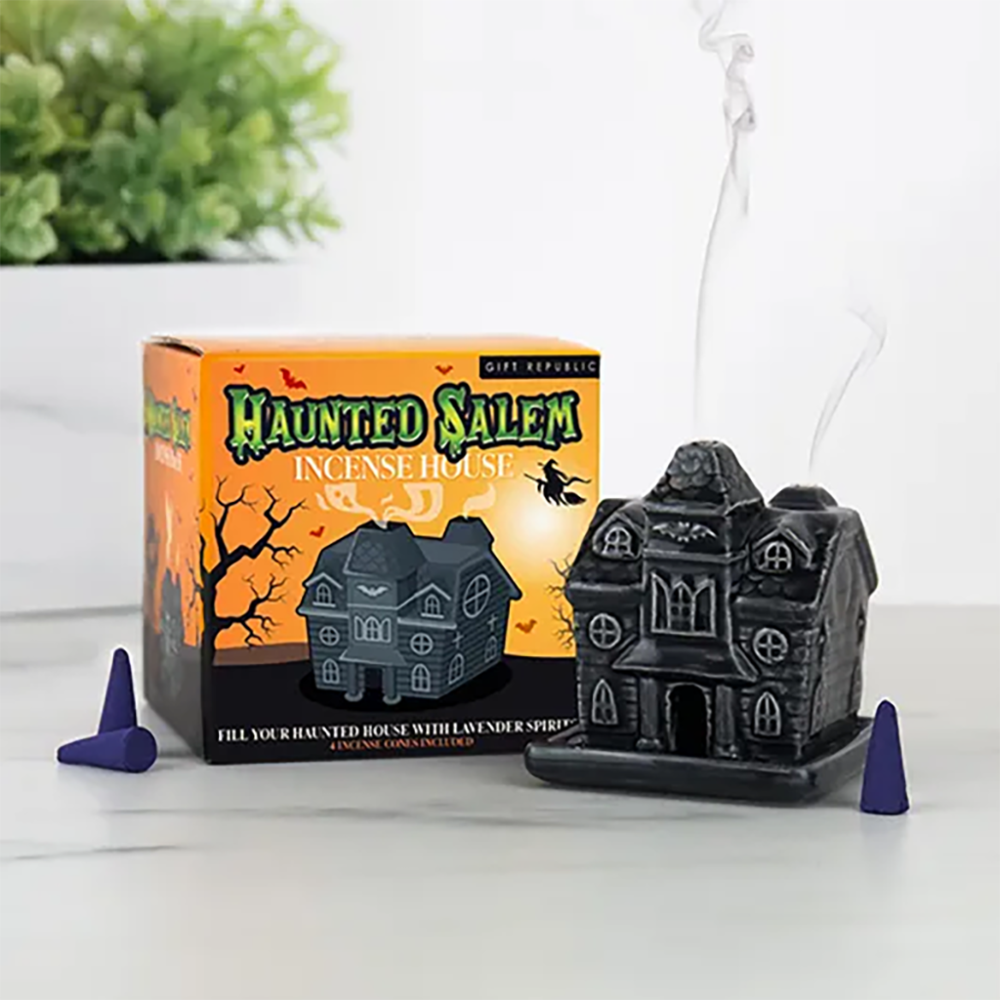 - Includes 1 ceramic haunted house, 1 ceramic plate, and 4 lavender-scented incense cones.
